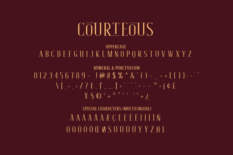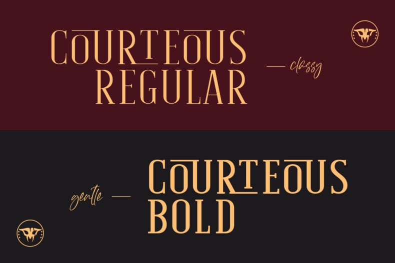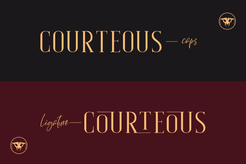 Courteous is absolute elegance. It’s semi-condensed serif font with straight and consistent shape in every letter that will give a taste of professional feels to any design. Adding ligature will make it more stylish and modish, very suitable for fashion or beauty projects. Courteous also have the bold version that will looks more gentle.